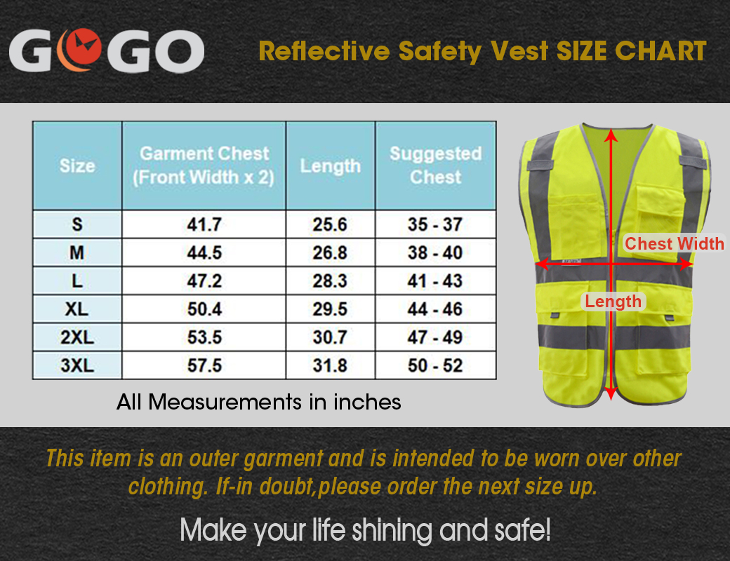 Gogo Us Big Tall 9 Pockets High Visibility Zipper Front Safety Vest With Reflective Strips Meets Ansi Standards Walmart Com